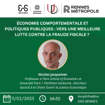 Nicolas Jacquemet présentera ses méthodes de recherches en économie, ainsi que son ouvrage « Économie comportementale des politiques publiques ». Cet ouvrage, paru en 2021, cherche à démontrer l’impact des réactions des acteurs économiques sur la prise de décisions et l’élaboration des politiques publiques. Il prend alors en compte les biais cognitifs, les nudges ainsi que les normes sociales. Il fera ensuite un cas d’application sur la fraude fiscale, sur la base de son ouvrage « Comment lutter contre la fraude fiscale », dans lequel il explore les mécanismes à l’origine de la fraude fiscale et propose des stratégies pour la combattre de manière efficace.