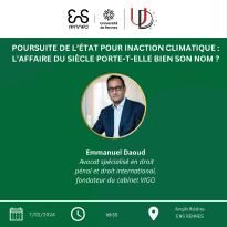 Conférence organisée par UbiDEM, avec Maitre Emmanuel DAOUD avocat spécialiste du droit international ayant plaidé dans "L'Affaire du Siècle".