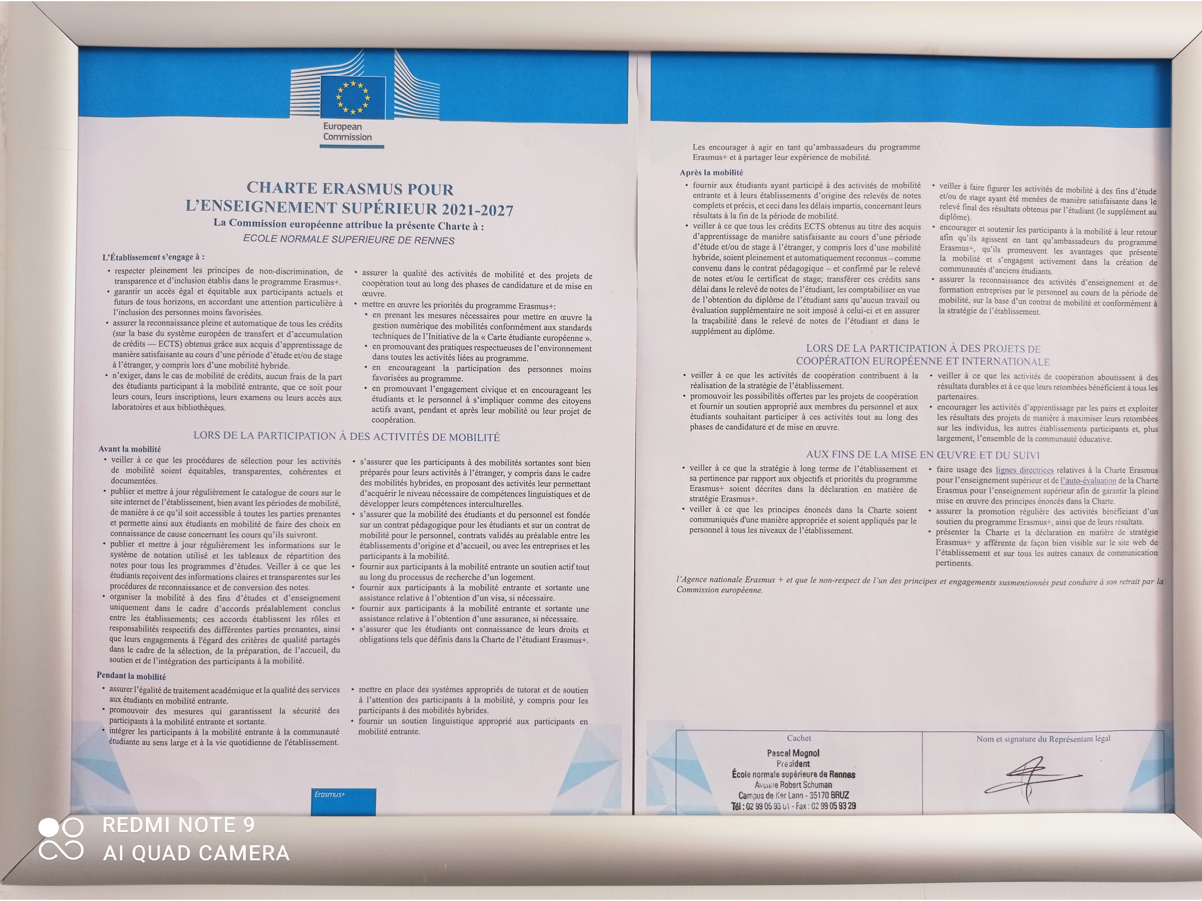 La Charte ERASMUS+ 2021-2027 a été décernée à l'Ecole normale supérieure de Rennes.